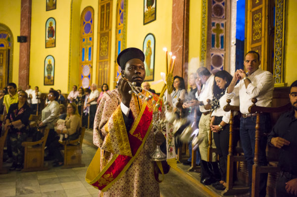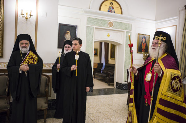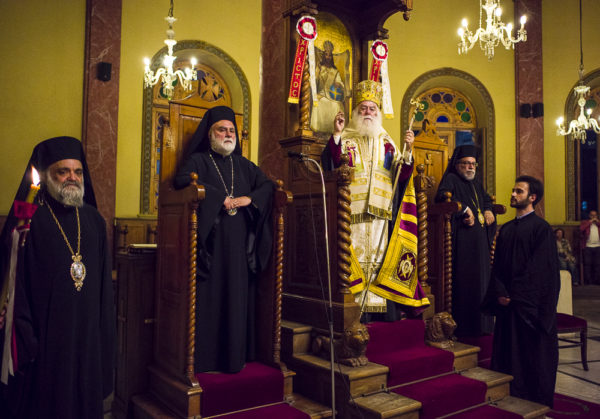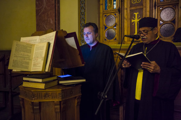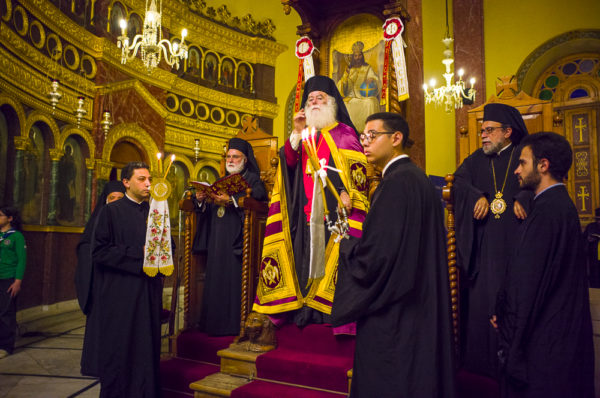 Στους ήχους των ιερών ύμνων, που απέδωσαν ο Πρωτοψάλτης της Ελληνικής Κοινότητας Καΐρου κ. Κωνσταντίνο Μιχαλακόπουλος, ο Αραβόφωνος Πρωτοψάλτης και Άρχοντας του Πατριαρχείου κ. Τόνυ Ατάλα, και ο ιεροψάλτης κ. Αντώνης Ζερβός, η ατμόσφαιρα γέμισε με θρησκευτική κατάνυξη και πνευματική ένταση.