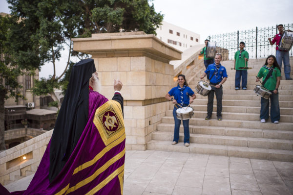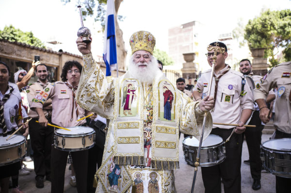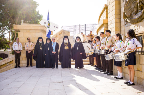 Η μπάντα τον Αιγυπτίων Προσκόπων έδωσε με την δυναμική της παρουσία τον εορταστικό τόνο της ημέρας με τον Μακαριώτατο Πατριάρχη Αλεξανδρείας να ευλογεί με καρδιά γεμάτη ευλάβεια τους προσκυνητές που προσέτρεξαν στην χάρη του Αγίου.