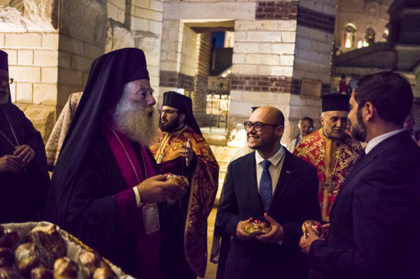 Στον Πατριαρχικό Εσπερινό παρέστησαν συμπροσευχούμενοι ο Επιτετραμένος της Ελληνικής Πρεσβείας κ. Αθανάσιος Λεούσης, ο Επιτετραμένος της Πρεσβείας της Κύπρου κ. Ονούφριος Οικονομίδης, ο Κοινοτικός Επίτροπος κ. Ανδρέας Γιόσρι, ο Αν. Διευθυντής της Αμπετείου Σχολής κ. Βασίλειος Μπακούρος ο Αρχηγός των Προσκόπων κ. Χρήστος Αντωνίου και η Οικονομική Διευθύντρια του Ελληνικού Πολιτιστικού Κέντρου Καΐρου κ. Κωνσταντίνα Γεδεών.