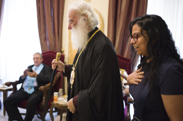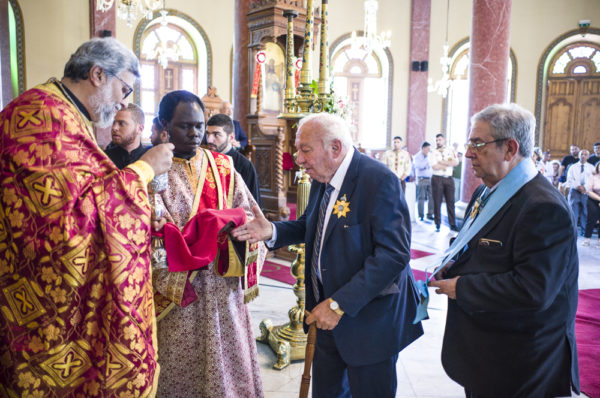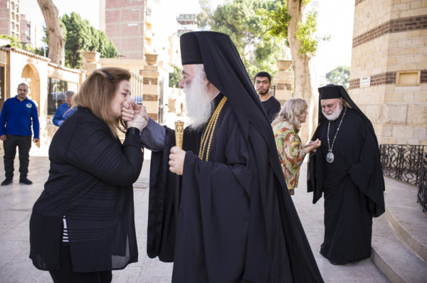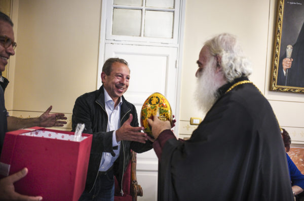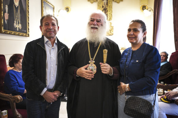 Στην συνέχεια όλοι μετέβησαν στην Αίθουσα του Θρόνου όπου ο Πατριάρχης κ.κ. Θεόδωρος Β΄ τίμησε με ένα ιδιαίτερο δώρο τον κ. Οσάμα Μπισάι, μέλος της οικογένειας Σαγουίρις, και υψηλόβαθμο στέλεχος του επιχειρηματικού Ομίλου «Όρασκομ». Ο Μακαριώτατος με αυτόν τον συμβολικό αλλά και ουσιαστικό τρόπο τίμησε στο πρόσωπο του κ. Μπισάι την ανιδιοτελή προσφορά όπως ανέφερε χαρακτηριστικά της οικογένειας Σαγουίρις στο Πατριαρχείο Αλεξανδρείας. Ευχαρίστησε επίσης και τον Καθηγούμενο της Μονής Σεβασμιώτατο Μητροπολίτη κ. Νουβίας Σάββα για την άψογη πανηγυρική ημέρα στην Πατριαρχική Μονή.