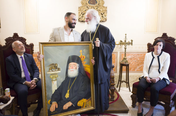 Η χαρούμενη πανηγυρική ημέρα έκλεισε με τα αποκαλυπτήρια ενός ζωγραφικού πίνακα με την μορφή του Πατριάρχη τον οποίον δώρισε στον Πηδαλιούχο του Αλεξανδρινού Θρόνου ο Αιγύπτιος ζωγράφος κ. Αμπανού Γκαμάλ.