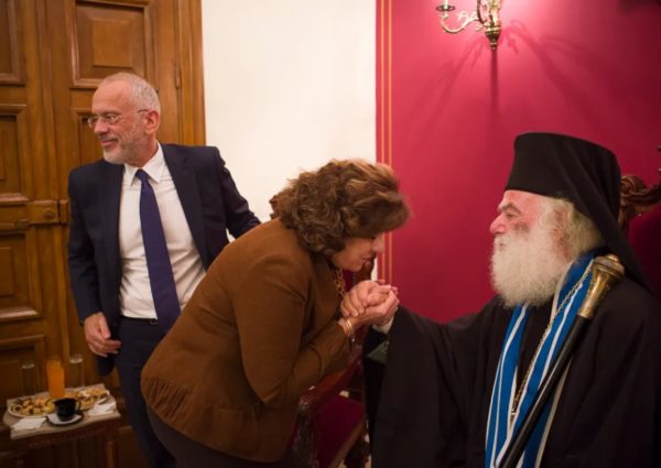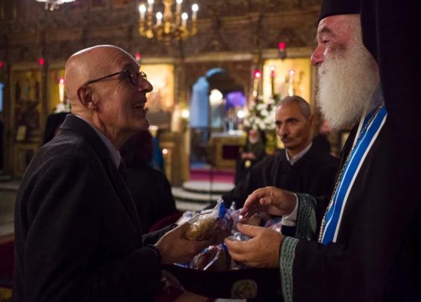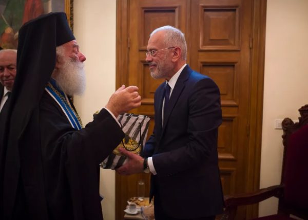 Ιδιαίτερες ευχές για την ονομαστική του εορτή επεφύλαξε ο Μακαριώτατος και για τον Έλληνα Πρέσβη κ. Νικόλαο Παπαγεωργίου, ο οποίος δέχτηκε επίσης την αγάπη και τις ευχές από όλους τους παριστάμενους.