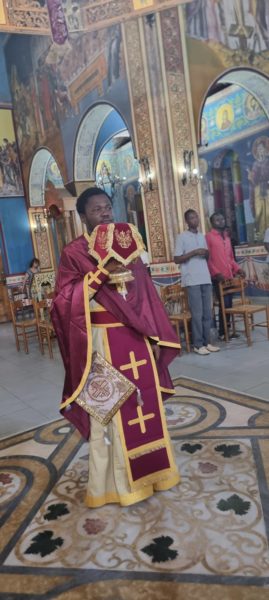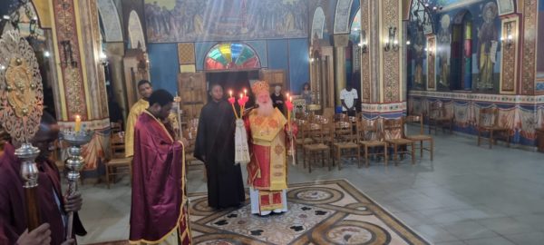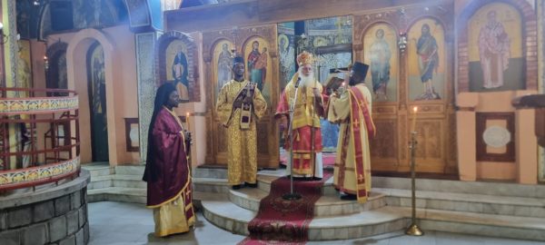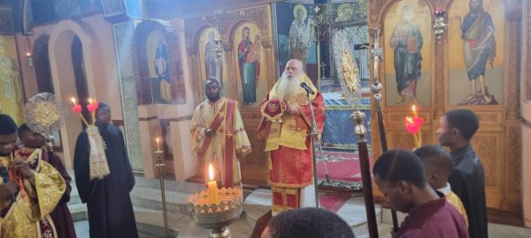 Της Ιεράς Αγρυπνίας προεξήρχε ο Μητροπολίτης Κινσάσας κ. Θεοδόσιος. Κατά την Ακολουθία του Εσπερινού ο Σεβασμιώτατος ευλόγησε την αρτοκλασία αιτούμενος την εξ ύψους δύναμη και βοήθεια και υγεία για τον Πατριάρχη Αλεξανδρείας κ.κ. Θεόδωρο.