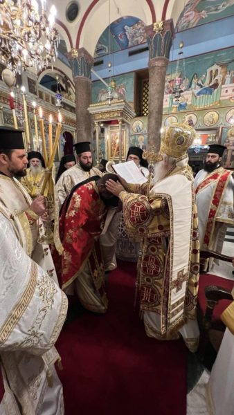 Στον χειροτονητήριο λόγο του ο Εψηφισμένος Επίσκοπος Πανάρετος αναφέρθηκε στην διακονία που καλείται ο Επίσκοπος να επιτελέσει.