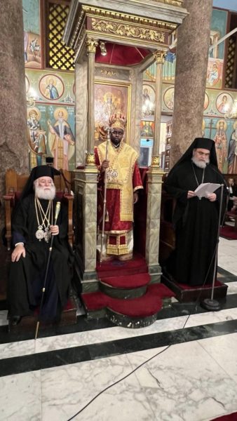 Οφειλετικώς ευχαριστούμε τον διακεκριμένον τούτον Ιεράρχην του καθ’ ημάς Πατριαρχικού Θρόνου τόσο για την προετοιμασία σου, όσο και για τους πολλούς φωτοφόρους αγώνες του υπέρ «των εν σκότει και εν χώρα και σκιά θανάτου» καθημένων Αφρικανών αδελφών μας.