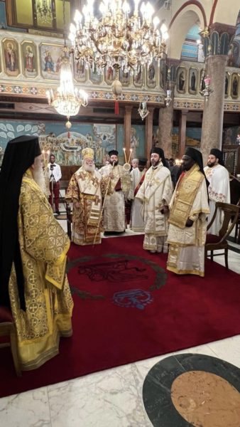 Στο Αρχιερατικό Συλλείτουργο συμμετείχαν οι Μητροπολίτες Ταμασού και Ορεινής κ. Ησαΐας, Ναυκράτιδος κ. Παντελεήμων, Πηλουσίου κ. Νάρκισσος, και οι Επίσκοποι Ελντορέτ κ. Νεόφυτος και Ταμιάθεως κ. Γερμανός, πλαισιούμενοι από ιερείς της Ιεράς Πατριαρχικής Μονής. Συμπροσευχόμενοι ήταν Αλεξανδρινοί Χριστιανοί και προσκυνητές προερχόμενοι από την Κύπρο.