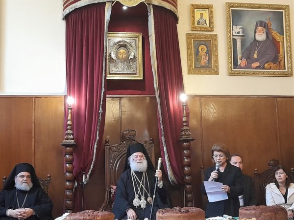 Επακολούθησε στο Αρχονταρίκι της Πατριαρχικής Μονής η κοπή της αγιοβασιλόπιτ τας του Λυκείου Ελληνίδων – Παραρτήματος Αλεξανδρείας από τον Μακαριώτατο, καθώς και εόρτια δεξίωση προς το πολυπληθές εκκλησίασμα.