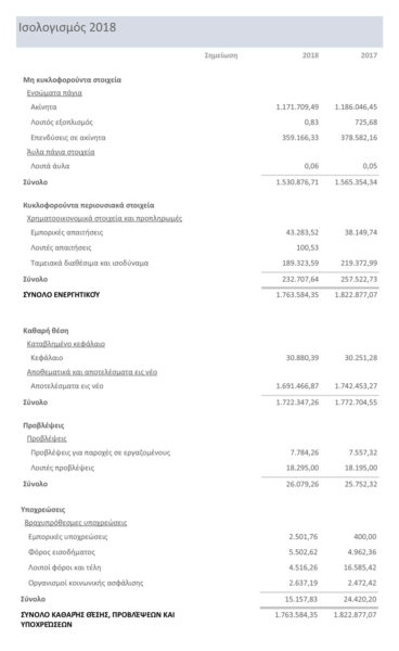 Στις 1 Μαρτίου 2019, δημοσιεύει στην επίσημη ιστοσελίδα της, τον Ταμειακό Απολογισμό καθώς και τον Ισολογισμό 2018 του Σωματείου της.