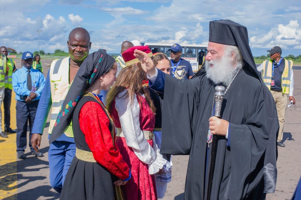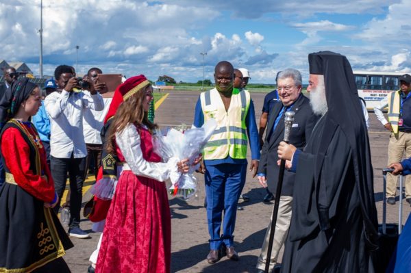 Στον διεθνή αερολιμένα τον Αλεξανδρινό Προκαθήμενο, τον οποίο συνοδεύουν ο Σεβ. Μητροπολίτης Μέμφιδος κ. Νικόδημος, Πατριαρχικός Επίτροπος Καΐρου και ο Πανοσιολ. Αρχιμ. κ.Θεόδωρος Mutombo, υπεδέχθησαν με κάθε επισημότητα και τιμή ο οικείος Μητροπολίτης, Σεβ. Κατάνγκας κ. Μελέτιος, καθώς και ο Θεοφιλ. Επίσκοπος Κωνσταντιανής κ. Κοσμάς, η Πρέσβης της Ελλάδος στην Κινσάσα κ. Καλλιόπη Ντούτη, ο Γενικός Πρόξενος της Ελλάδος ε.τ. κ. Γεράσιμος Ντούνης, ο Γενικός Γραμματέας Απόδημου Ελληνισμού και Δημόσιας Διπλωματίας κ. Ιωάννης Χρυσουλάκης, ο Πρόεδρος της Ελληνικής Κοινότητος Λουμπουμπάσι κ. Γεώργιος Ψαρομμάτης και γηγενείς κληρικοί.