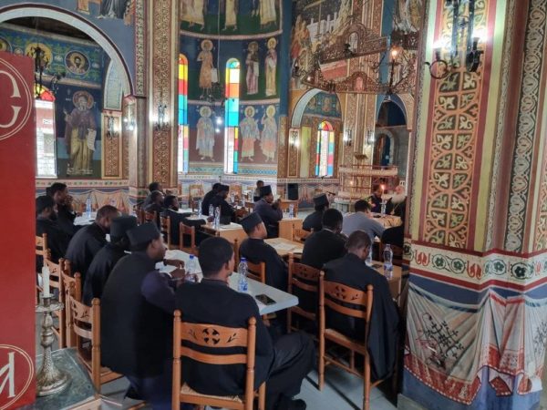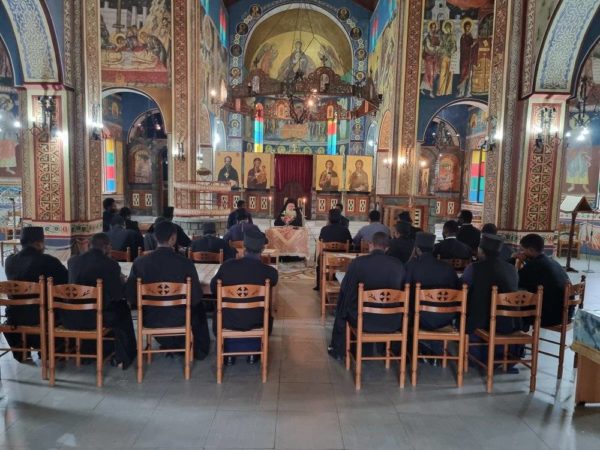Η Ιερατική Σύναξη της Ιεράς Μητροπόλεως Κινσάσας πραγματοποιήθηκε το πρωί της Τρίτης 14 Φεβρουαρίου 2023 στο χώρο της Ιεράς Μονής Οσίου Αθανασίου του Αθωνίτου (Θεολογική Σχολή) με την συμμετοχή όλων των ιερέων της Ιεράς Μητροπόλεως παρουσία του Σεβασμιωτάτου Μητροπολίτη κ. Θεοδοσίου.