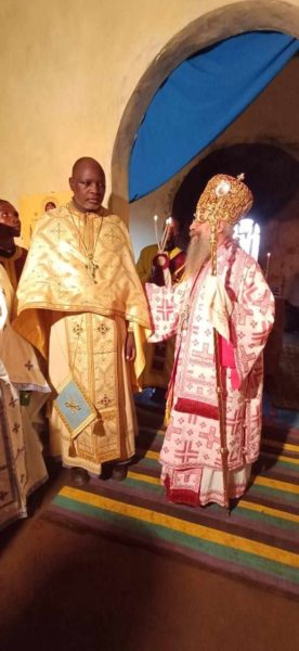 Ευχαρίστησε τον μέχρι τούδε εφημέριο π. Θεόδωρον Mtabazi, για την ευθύνη της ανέγερσης του Ναού, και την επί εικοσαετία Ιεραποστολή στην Κυέρουα. Τον ευχαρίστησε και για την υπακοή του στην Εκκλησία και τον Επίσκοπο, να μεταβεί στην Γκέιτα, όπου εκεί θα αναλάβει νέο Ιεραποστολικό έργο για την διάδοση της Ορθοδοξίας. Για το λόγο αυτό τον χειροθέτησε Οικονόμο και του απένειμε τον επιστήθιο Τίμιο Σταυρό.