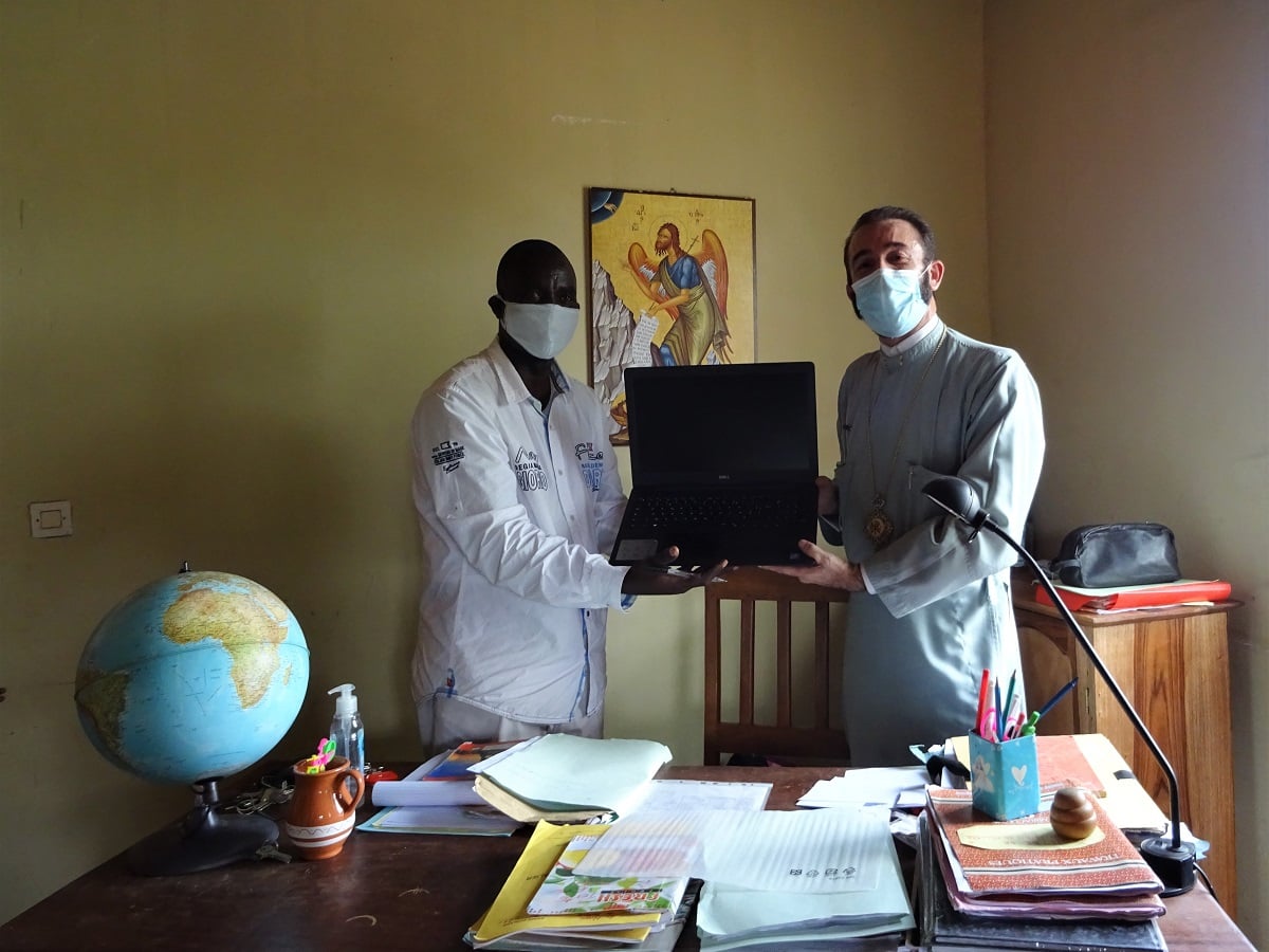 Ακολούθως μετέβη στα παρακείμενα σχολεία της τοπικής Εκκλησίας, όπου προσέφερε φορητό υπολογιστή στον Διευθυντή του Γυμνασίου κ.Florant Moussouka, δωρεά της μεγάλης εταιρείας πωλήσεων ειδών πληροφορικής, ηλεκτρονικού εξοπλισμού κλπ BUROTOP IRIS. Επίσης, ήλεγξε τις εκ βάθρων προσφάτως ανακαινισθείσες τουαλέτες των μαθητών δαπάναις της Ι. Μητροπόλεως, ως και ολόκληρο το κτιριακό συγκρότημα.