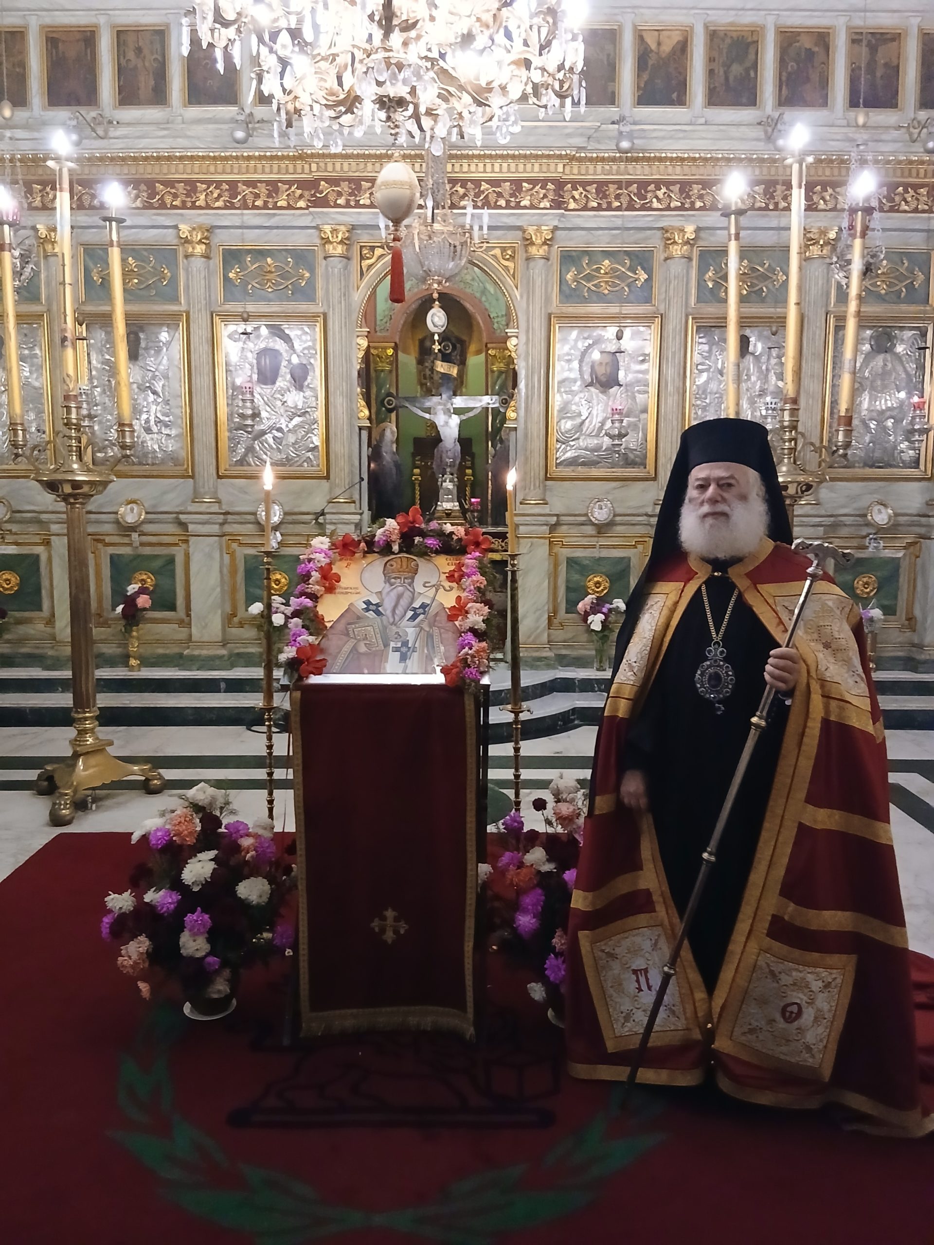 Μνημόνευσε ακόμη ότι στην Αίθουσα του Θρόνου στην Αλεξάνδρεια έχει αναρτηθεί προ διετίας προσωπογραφία του Αγίου, έργο του Αιγυπτιώτου ζωγράφου Sefen Gad.