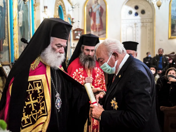 Τέλος ο Πατριάρχης Θεόδωρος αφιέρωσε τιμητικό αστέρα ως αναγνώριση του έργου του, στον κ. Κλοντ Νακάς Πρόεδρο τον Αραβόφωνων Ορθοδόξων Χριστιανών.
