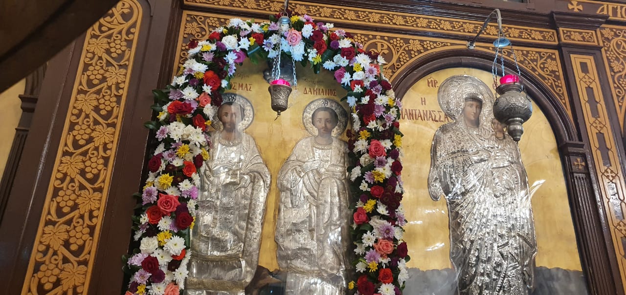 Ο Μητροπολίτης Μέμφιδος και Πατριαρχικός Επίτροπος Καΐρου κ. Νικόδημος μίλησε για την ευεργετική, θαυματουργική και θεραπευτική χάρη των Αγίων που έλκουν την καταγωγή τους από τη Μικρά Ασία. Είπε ότι ονομάστηκαν Ανάργυροι γιατί η αγάπη τους δεν τους επέτρεπε να παίρνουν χρήματα από τους συνανθρώπους τους.