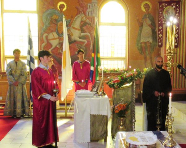 Του μνημοσύνου προέστη ο Σεβασμιώτατος Μητροπολίτης Καλής Ελπίδος κ. Σέργιος ο οποίος τέλεσε την Θεία Λειτουργία στον Καθεδρικό Ναό του Αγίου Γεωργίου του Κέιπ Τάουν.