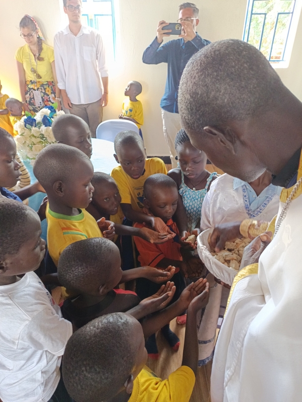 Μετά από πολύωρο ταξίδι μαζί με τον επιχώριο Επίσκοπο κ. Σιλβέστρο, αφίχθη στην περιοχή Βuyende, όπου βρίσκεται ο Ιερός Ναός της Μεταμορφώσεως. Δίπλα σ’ αυτόν λειτουργεί το σχολείο των Λαρισαίων, γνωστό ως “STERGIOULIS ORTHODOX SCHOOL CHILDREN CENTER “. Στον προαύλιο χώρο του Ναού, οι μαθητές του σχολείου υποδέχθηκαν με ενθουσιασμό και τραγούδια τον Επίσκοπο με τη συνοδεία του. Ακολούθησε ξενάγηση στους χώρους του σχολείου, όπου ο Διευθυντής του σχολείου ευχαρίστησε όλους τους δωρητές από την Ελλάδα στο προσωπο των μελών του κλιμακίου.