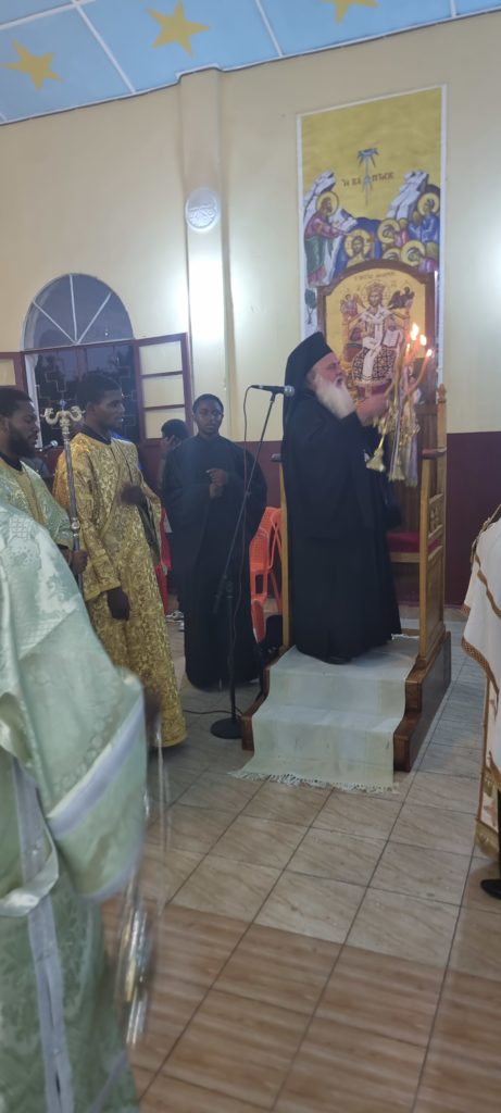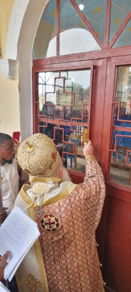 Στη συνέχεια ο Μητροπολίτης μετέφερε σε όλους τις ευχές και τις ευλογίες του Μακαριωτάτου Πάπα και Πατριάρχου Αλεξανδρείας και πάσης Αφρικής κ.κ. Θεοδώρου Β΄, ενώ ανέφερε πως πιστεύει ότι την στιγμή αυτή θα χαίρεται και θα αγάλλεται στους ουρανούς η μακαριστή ψυχή του μακαριστού Μητροπολίτου Κινσάσας Νικηφόρου. Σημειωτέον ότι στον ίδιο ναό εγκαινιάστηκε και η δευτέρα Αγία Τράπεζα εις τιμήν του Αγίου Μάρτυρος Νικηφόρου.