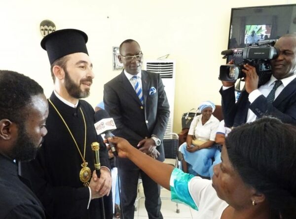 Μετά την εγκάρδια υποδοχή από την Διευθύντρια κα. Rose Tchipoussou, η οποία μετέφερε τις ευγνώμονες ευχαριστίες της Πρώτης Κυρίας, Εξοχ.κας. Antoinette Sassou Nguesso, ιδρύτριας του συγχρόνου γηροκομείου, και την προσφορά της έμπρακτης αγάπης της τοπικής Εκκλησίας, απεδόθησαν χριστιανικοί ύμνοι και άσματα από την Ενοριακή Χορωδία. Την επίσκεψη του Σεβ. Μητροπολίτη και την δωρεά της τοπικής Ορθοδόξου Εκκλησίας στον Οίκο Γερόντων εκάλυψε η κρατική τηλεόραση Télé Congo.
