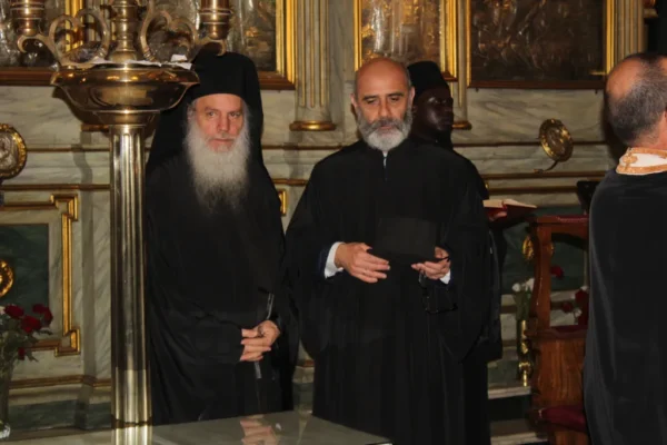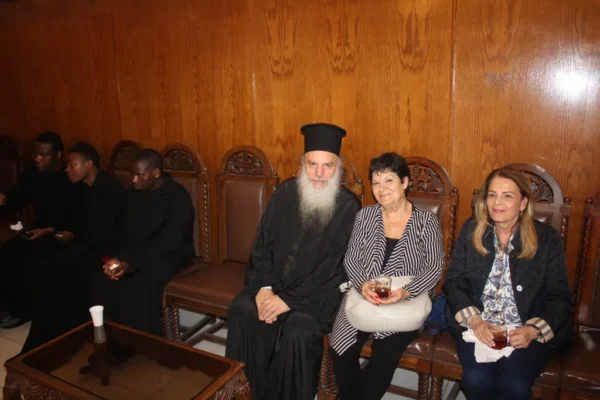 Εν συνεχεία οι νέοι Μοναχοί δέχθηκαν τις ευχές των συμπροσευχομένων, Σεβασμιωτάτου Μητροπολίτου Πηλουσίου κ. Ναρκίσσου Πατριαρχικού Επιτρόπου Αλεξανδρείας, του Προϊσταμένου της Ιεράς Μονής Πανιερωτάτου Μητροπολίτου Ταμιάθεως Γερμανού, του Θεοφιλεστάτου Επισκόπου Ιππώνος Στεφάνου, των κληρικών της πατριαρχικής αυλής Αρχιμανδρίτου κ. Φιλάρετου και του Πρωτοπρεσβύτερου π. Πάνου Γαζή, των καθηγητών και σπουδαστών της Σχολής και των λοιπών πιστών της παροικίας.