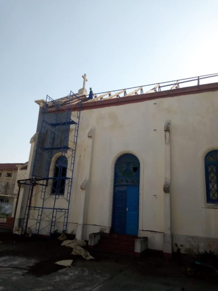 Ξεκίνησαν οι εργασίες αποκατάστασης των ζημιών του ιστορικού Ελληνορθοδόξου Ιερού Ναού Αγίας Τριάδος από το καταστροφικό πέρασμα του κυκλώνα Ιντάι,που σάρωσε τον περασμένο Μάρτιο την πόλη Μπέιρα της Μοζαμβίκης .