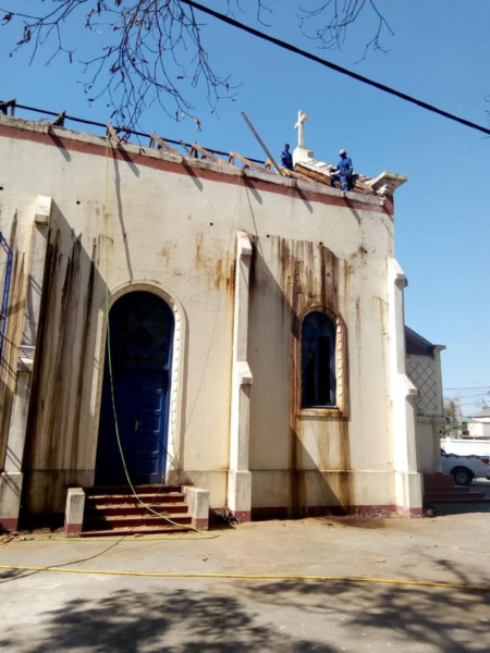 Ξεκίνησαν οι εργασίες αποκατάστασης των ζημιών του ιστορικού Ελληνορθοδόξου Ιερού Ναού Αγίας Τριάδος από το καταστροφικό πέρασμα του κυκλώνα Ιντάι,που σάρωσε τον περασμένο Μάρτιο την πόλη Μπέιρα της Μοζαμβίκης.