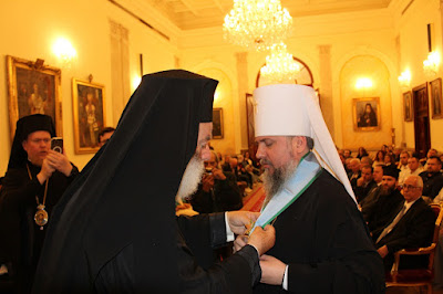 “Μακαριώτατε, κατά τούτην την πανεπίσημον και ενωτική στιγμή της μεταξύ μας κοινωνίας, στο πλαίσιο της προς ημάς Ειρηνικής Επισκέψεώς Σας, κατά την οποία Σας υποδεχόμεθα ως ισότιμο και Κανονικό Προκαθήμενο Εκκλησίας μαρτυρικής και πολυπληθεστάτης, μετά την απολύτως ορθή Κανονικώς και δικαιωματικώς εκχώρηση της Αυτοκεφαλίας υπό του Πανίερου Οικουμενικού Θρόνου και του Σεπτού Προκαθημένου Αυτού, Παναγιωτάτου Οικουμενικού Πατριάρχου κ.κ.Βαρθολομαίου προς την καθ’ Υμάς Αγιωτάτη Μητρόπολη Κιέβου και πάσης Ουκρανίας, δεν κρύβουμε τον πόνο, τον οποίο φέρουμε στην καρδία μας μεθ’ όλης της Ιεραρχίας, του ιερού κλήρου και του λαού της Πατριαρχικής δικαιοδοσίας μας, για την παράλογη, ανάδελφη, εκδικητική και ως εκ τούτου αντιχριστιανική αντίδραση του Πατριαρχείου Μόσχας προς ημάς, εξαιτίας τούτου του μεγάλου εκκλησιαστικού γεγονότος, δηλονότι της Αυτοκεφάλου καταστάσεως της καθ’ Υμάς Αγιωτάτης Εκκλησίας και της εκ μέρους μας αναγνωρίσεως αυτής,