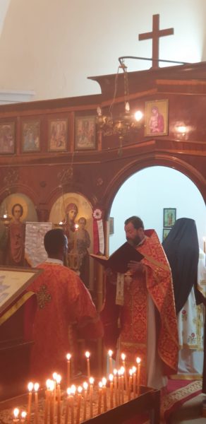 Ο Σεβασμ. μετέφερε τις ευχές του Αλεξανδρινού Προκαθημένου κ.κ. Θεοδώρου Β και αναφέρθηκε στο μαρτύριο του Αγίου που είναι μια διαρκής μαρτυρία Ιησού Χριστού σε όλες τις εποχές.