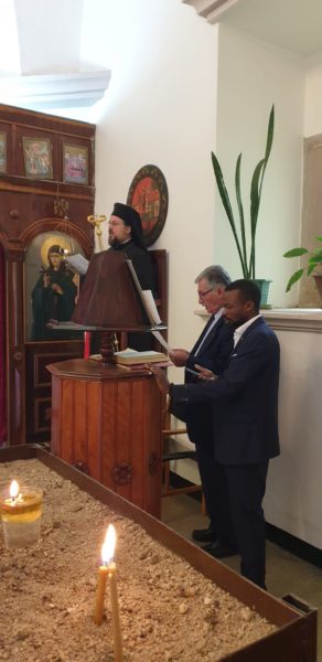 Με την παρουσία της Εριτ. κ. Βασιλικής Σκαλιστήρα, Επιτετραμμένης και Διευθύνουσας του Προξενικού Γραφείου της Ελλάδος στην Αιθιοπία, του Εντιμ. Προέδρου της Ελληνικής Κοινότητος Αδδίς Αμπάμπα κ. Δημητρίου Συκά και με τη συμμετοχή Ορθοξόδων παροίκων, Ελλήνων, Αιθιόπων, Ρώσων, Σύριων, Κογκολέζων και λοιπών Αφρικανών, οι οποίοι προσήλθαν για να τιμήσουν τον Άγιο Γεώργιο τον θαυματουργό.