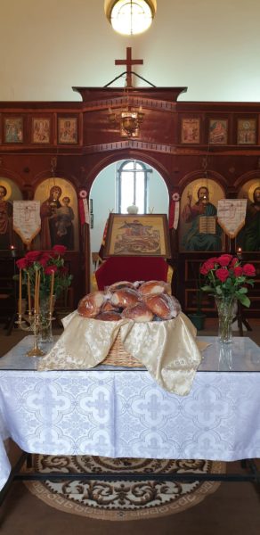 Στο πέρας της Θείας Λειτουργίας τελέσθηκε η Ακολουθία της Αρτοκλασίας και εν συνεχεία πραγματοποιήθηκε λιτανεία της Ιεράς Εικόνος του Αγίου πέριξ του Ιερού Ναού.
