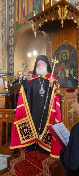 Στον λόγοτου, ο Μακαριώτατος, εξέφρασε την χαρά του που βρίσκεται ξανά κοντά στο αραβόφωνο ποίμνιο για να εορτάσει αυτή την φορά μαζί τους διπλή εορτή, αυτή της Συνάξεως των Παμμεγίστων Ταξιαρχών αλλά και αυτή της συμπληρώσεως 90 χρόνων λειτουργίας του περικαλλούς Ναού του Ντάχερ.