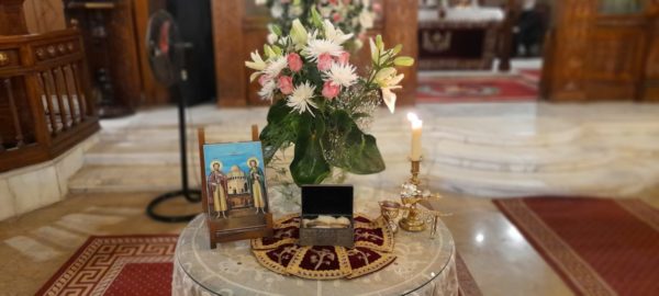 Τέλος αξίζει να σημειωθεί, πως χάριν αγιασμού και ευλογίας των πιστών ο Καθηγούμενος της Ιεράς Πατριαρχικής Μονής Αγίου Γεωργίου Καϊρου προσεκόμισε τα Ιερά Λείψανα των Αγίων Νεομαρτύρων Γαβριήλ και Κυρμιδώλη στον πανηγυρίζοντα Ιερό Ναό.