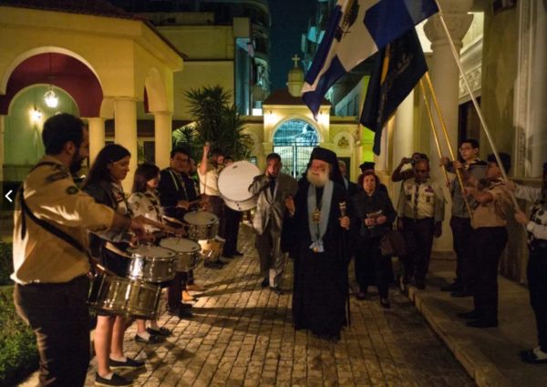 Εισήλθε αντανακλώντας χαμόγελα, ευχές και ευλογία προς όλους. Οι καμπάνες χτυπούσαν χαρμόσυνα και ο ζωηρός παιάνας των Προσκόπων κάλυπτε τον πολύβουο ήχο της πόλης μεταφέροντας με πείσμα τον πανηγυρικό της ημέρας στα στενοσόκακα του Χαμζάουι.