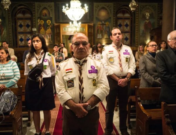 Οι Αιγύπτιοι Πρόσκοποι από την ενορία του Ντάχερ ήταν παρόντες και επεφύλαξαν στον Πατριάρχη μια μεγαλοπρεπή υποδοχή. Παρατεταγμένοι έξω από την είσοδο του Ναού με τις τρομπέτες, τα τύμπανα, και τα πιατίνια τους ανά χείρας έδωσαν τον πανηγυρικό τόνο της ημέρας παιανίζοντας χαρμόσυνους ρυθμούς ενώ ο Μακαριώτατος εισερχόταν στην Εκκλησία.Όλοι είχαν συγκεντρωθεί στην είσοδο για να τον υποδεχτούν.