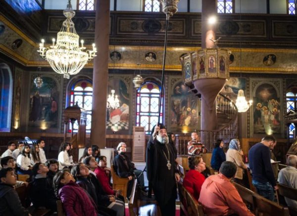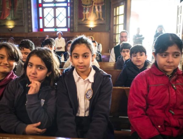Γύρω στις εννέα και μισή το πρωί, η ενέργεια του χώρου άλλαξε, η ατμόσφαιρα ζεστάθηκε και όλα τα βλέμματα όλων γύρισαν προς την πόρτα για να υποδεχτούν τους μαθητές των Ελληνικών Σχολείων του Καΐρου που με τα φωτεινά τους πρόσωπα και την τρυφερότητα της καρδιάς τους προσήλθαν για να εκκλησιαστούν.