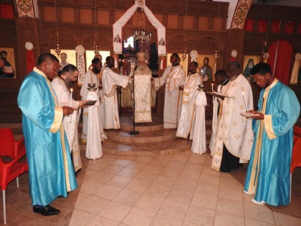 Την Κυριακή, 19/04/2020, τελέστηκε ο Εσπερινός της Αγάπης στον Ιερό Ναό Αγίου Νικολάου στο Κολουέζι, χοροστατούντος του Σεβασμιωτάτου Μητροπολίτου μας. Κατά την διάρκεια του Εσπερινού της Αγάπης, διαβάστηκε το Ιερό Ευαγγέλιο, ως είθισται, και σε άλλες γλώσσες (Αγγλικά, Γαλλικά, Σουαχίλι και Κισάνγκα – τοπική διάλεκτο).