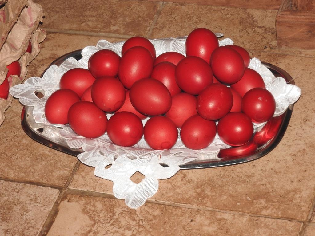 Στο τέλος του Εσπερινού, ο Σεβασμιώτατος ευχήθηκε σε όλους τους παρευρισκομένους και μοίρασε στον καθένα από ένα κόκκινο αυγό.