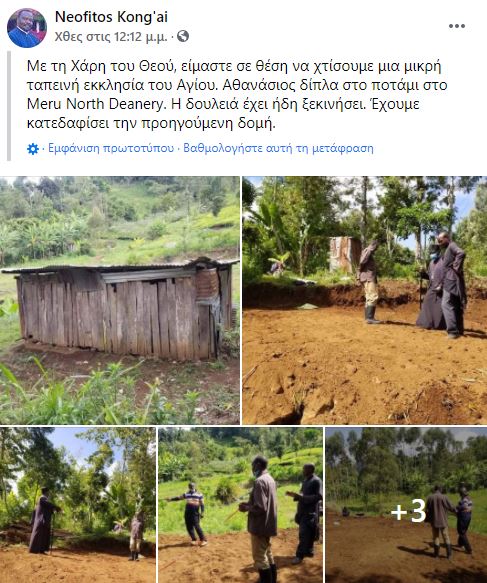 “Με τη Χάρη του Θεού, είμαστε σε θέση να χτίσουμε μια μικρή ταπεινή εκκλησία του Αγίου Αθανασίου δίπλα στο ποτάμι στο Meru North Deanery. Η δουλειά έχει ήδη ξεκινήσει. Έχουμε κατεδαφίσει την προηγούμενη δομή” αναφέρει σε επίκαιρη ανάρτησή του, ο Θεοφιλέστατος Επίσκοπος Νιέρι και Όρους Κένυας κ. Νεόφυτος.