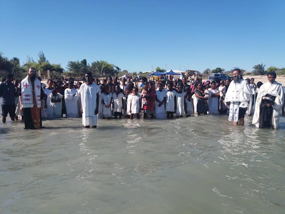 “Όσοι εις Χριστόν εβαπτίσθητε, Χριστόν ενεδύσασθε” Κατά το αρχαίο έθος κατά την αναστάσιμη περίοδο πραγματοποιούνται οι βαπτίσεις των κατηχουμένων. Στη μακρινή επισκοπή της Νοτίου Μαδαγασκάρης μέσα σε τρεις ημέρες προχώρησαν στο Άγιο Βάπτισμα πάνω από εκατό νεοφώτιστοι. Τους νεοφώτιστους βάπτισε ο Θεοφιλέστατος Επίσκοπος Τολιάρας και Νοτίου Μαδαγασκάρης κ. Πρόδρομος ο οποίος τόνισε όπως “εύχεστε όπως όλη η γη της Νοτίου Μαδαγασκάρης γίνει μια κολυμβήθρα βρύουσα ζωή αιώνιο”.