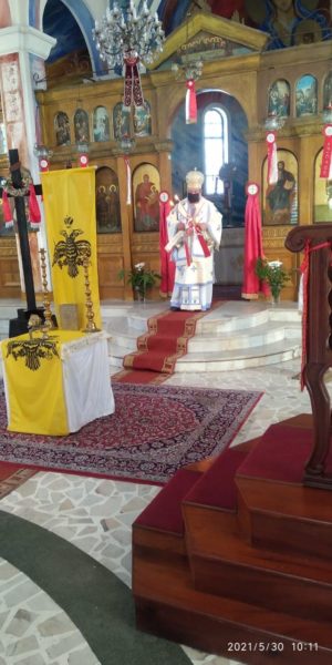 Ο Σεβασμιώτατος κήρυξε τον θείο λόγο και μετά το πέρας της Θείας λειτουργίας τέλεσε επιμνημόσυνη δέηση για τον τελευταίο Βυζαντινό αυτοκράτορα Κωνσταντίνο Παλαιολόγο, με αφορμή την επέτειο της Άλωσης της Κωνσταντινούπολης και των συν αυτώ συναγωνιστών, των θυσιασθέντων για την υπεράσπιση της Κωνσταντίνου Πόλεως, κατά τα γεγονότα της αλώσεώς της από τους Τούρκους στις 29 Μαΐου 1453.