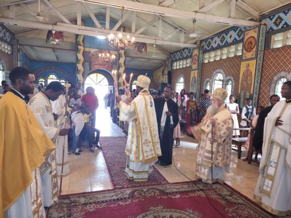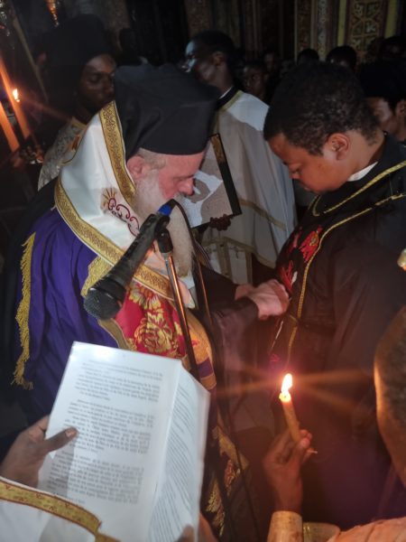 Τέλος ο Μητροπολίτης Κανάνγκας Χαρίτων χειροθέτησε δύο νέους της ενορίας του Αγίου Μάρκου Κανάνγκας ως αναγνώστες.
