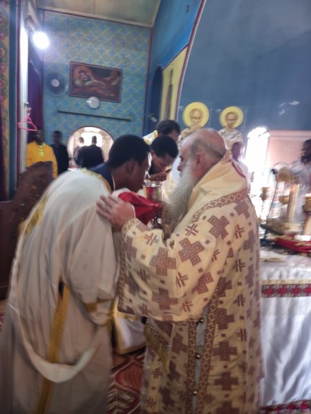 Την Κυριακή 5 Ιουνίου ο μοναχός Νικηφόρος έλαβε τον πρώτο βαθμό της Ιεροσύνης στον Ιερό Ναό του Αγίου Μάρκου Κινσάσας από τον Μητροπολίτη Κινσάσας κ. Θεοδόσιο ενώ της Δισαρχιερατικής Θείας Λειτουργίας προεξήρχε ο Μητροπολίτης Κανάνγκας Χαρίτων. Ο Μητροπολίτης Κινσάσας κ. Θεοδόσιος αφού ευχαρίστησε τον Μητροπολίτη Κανάνγκας κ. Χαρίτωνα για την συμμετοχή του στην χαρά του αδελφού στάθηκε για λίγο στο παιδικό όνειρο του νέου Διακόνου, όνειρο που πλέον γινόταν πραγματικότητα να υπηρετήσει την εκκλησία ως κληρικός. Υπέδειξε στον νέο κληρικό, που την επόμενη Κυριακή συν Θεώ, θα λάβει και τον δεύτερο βαθμό της ιεροσύνης, να έχει ως πρότυπο του τον Αρχιδιάκονο Στέφανο και πως πλέον πατρίδα του δεν θα είναι ο τόπος που γεννήθηκε αλλά η Αγία Τράπεζα που αναγγενάται ο κάθε κληρικός. Ο Μητροπολίτης στάθηκε για άλλη μια φόρα στον μακαριστό και Άγιο Ιεράρχη Νικηφόρο, λέγοντας πώς είναι σίγουρος όχι μόνο ότι χαίρεται με την αφιέρωση του νέου κληρικού στην Εκκλησία αλλά και θα τον σκεπάζει με τα νοερά φτερά του.