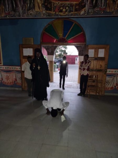 Στο τέλος της ακολουθίας του Εσπερινού που τελέστηκε το απόγευμα του Σαββάτου 7 Οκτωβρίου 2023 στο Καθολικό της Ιεράς Μονής Οσίου Αθανασίου του Αθωνίτου (Θεολογική Σχολή) στην Κινσάσα, πρωτεύουσα της Λαϊκής Δημοκρατίας του Κονγκό, εκάρει μοναχός ο Δόκιμος Τιμόθεος και έλαβε το όνομα Ιωσήφ εις τιμήν του Οσίου Ιωσήφ του Ησυχαστού.