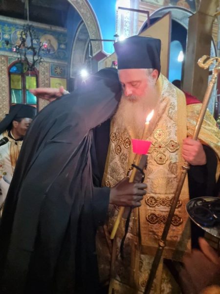 Αφού του μετέφερε τις ευχές του Μακαριωτάτου Πάπα και Πατριάρχου Αλεξανδρείας και πάσης Αφρικής κ.κ. Θεοδώρου Β’ του είπε να αισθάνεται με την καλή έννοια υπερήφανος που ως μοναχός ανήκει στο Πατριαρχείο Αλεξάνδρειας και πάσης Αφρικής το οποίο έχει αναδείξει τους μεγαλύτερους ασκητές της Εκκλησίας.