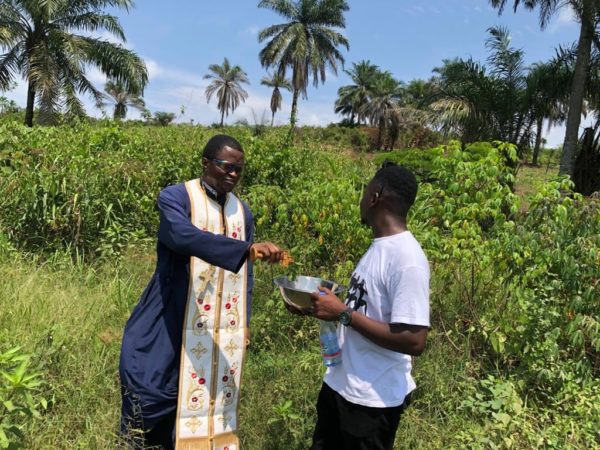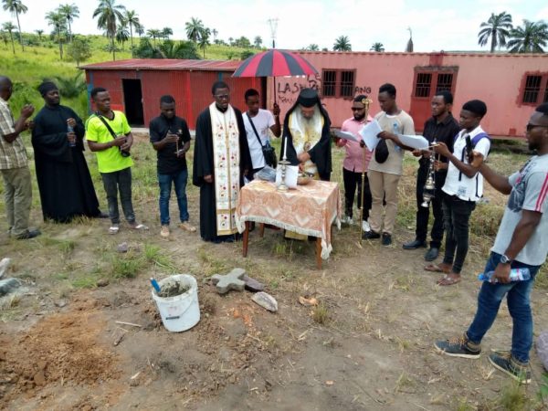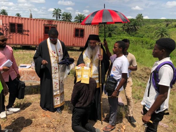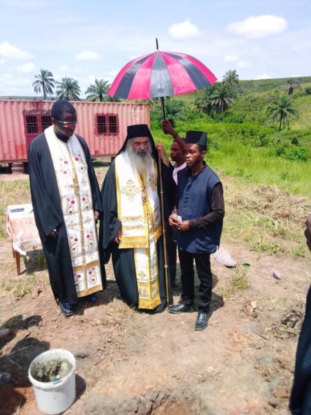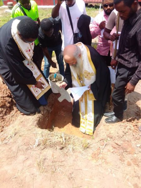 Μετά την ιερά τελετή της θεμελιώσεως Ναού ευλόγησε τον δόκιμο της Μονής Βασίλειον Mutondo, απόφοιτον της Σχολής.