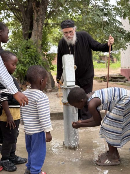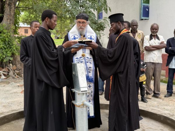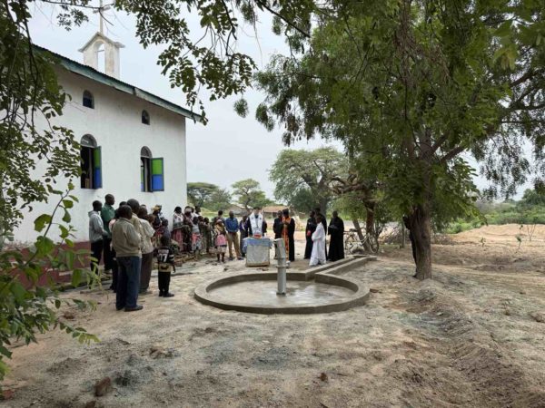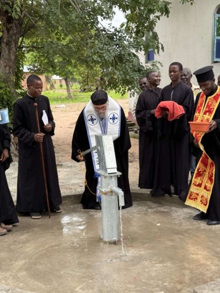 Μετά το πέρας της Θείας Λειτουργίας, ο Σεβασμιώτατος τέλεσε τον αγιασμό και εγκαινίασε τη γεώτρηση, που ανοίχθηκε στο προαύλιο του Ιερού Ναού με μέριμνα της Ιεράς Μητροπόλεως Αρούσας και της Ιεραποστολικής Στέγης. Το έργο αυτό αποτελεί ουσιαστική και ζωτικής σημασίας προσφορά προς τους κατοίκους της περιοχής, καθώς βελτιώνει καθοριστικά την καθημερινότητά τους. Η νέα γεώτρηση είναι μια πηγή ζωής και αγάπης, από την οποία μικροί και μεγάλοι, καθώς και τα ζώα της περιοχής, θα έχουν πλέον πρόσβαση σε πολύτιμο πόσιμο νερό, χωρίς την ανάγκη μακρινής και επίπονης μετακίνησης για τη εξασφάλισή του, όπως συνέβαινε έως σήμερα. Κατ’ αυτόν τον τρόπο ο Ιερός Ναός καθίσταται τόπος πνευματικής αλλά και σωματικής αναψυχής.