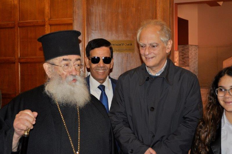 Ο κ. Πρέσβης, απόφοιτος ο ίδιος της περίφημης ιστορικής Αμπετείου Σχολής Καΐρου, εμφανώς συγκινημένος από την επίσκεψή του μετά από χρόνια στο παλιό του σχολείο, έτυχε εγκάρδιας υποδοχής από τον Αρχιεπίσκοπο Σινά, κ. Δαμιανό, Πρόεδρο του Ιδρύματος και Διευθυντή της Σχολής, καθώς και τον Γενικό Γραμματέα του Διοικητικού Συμβουλίου του Ιδρύματος, κ. Νικόλαο Βαδή, ενώ στη συνάντηση παραβρέθηκαν, επίσης, τα μέλη του Διοικητικού Συμβουλίου του Ιδρύματος κ. Γεώργιος Καλλίδης, κ. Αντώνιος Διαμαντίδης και η κ. Ελένη Μαγγανά-Οικονόμου (η οποία είναι και Πρόεδρος του Συλλόγου Γονέων και Κηδεμόνων της Αμπετείου), καθώς και ο Νομικός Σύμβουλος της Αμπετείου Σχολής κ. Μουνίρ Γκέργκες.