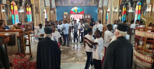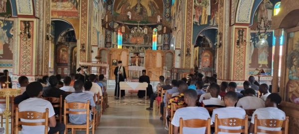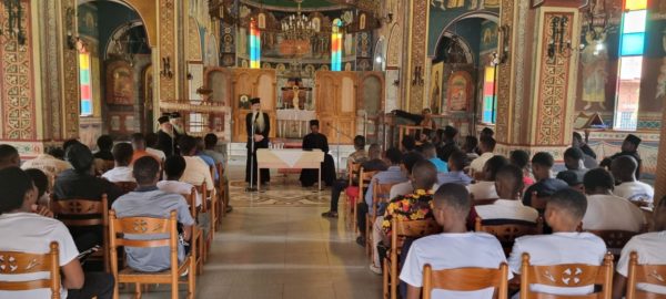 Υποδεχόμενος τον π Αστέριο στον Ιερό Ναό της Ιεράς Μονής – Θεολογικής Σχολής ο Σεβασμιώτατος Μητροπολίτης Κινσάσας κ. Θεοδόσιος, εξέφρασε για άλλη μία φορά τις ευχαριστίες του προς την Αδελφότητα του Σωτήρος για την πεντηκονταετή ιεραποστολική προσφορά της στο Κονγκό τόσο συνολικά ως αδελφότητος όσο και ειδικώς μέσω του μακαριστού Μητροπολίτου Κεντρώας Αφρικής και μετέπειτα Πενταπόλεως κυρού Ιγνατίου.