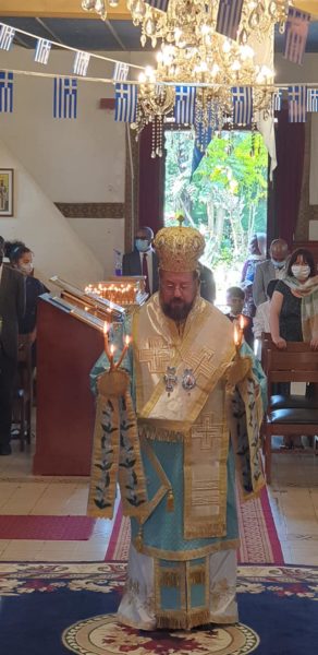 Ο Σεβασμιώτατος στην ομιλία του μετέφερε την πατρική την αγάπη και τις θερμότατες ευχές του Αλεξανδρινού Προκαθημένου Πάπα και Πατριάρχου Αλεξανδρείας και πάσης Αφρικής κ.κ. Θεοδώρου Β, ενώ αναφέρθηκε στην επέτειο εστιάζοντας στα πολλαπλά και σπουδαία για την εποχή μας ιστορικά μηνύματα που χρειάζεται να πάρουμε όλοι μας, για να ατενίζουμε με ελπίδα το μέλλον του οικουμενικού Ελληνισμού.