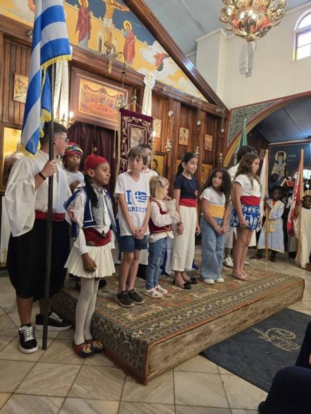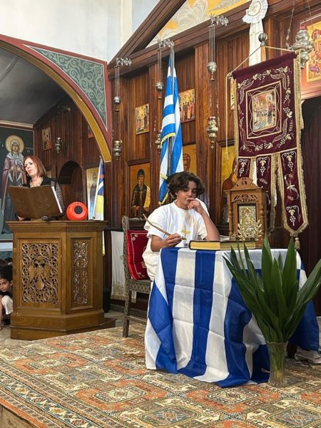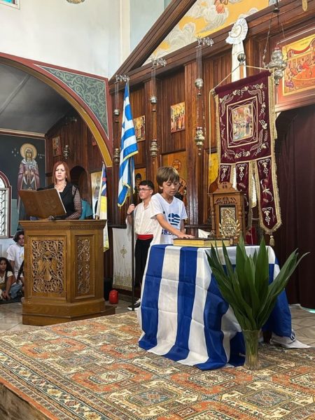 Ακολούθησε εντός του ναού αφιερωματική εκδήλωση από τους μαθητές και τις μαθήτριες του σχολείου.